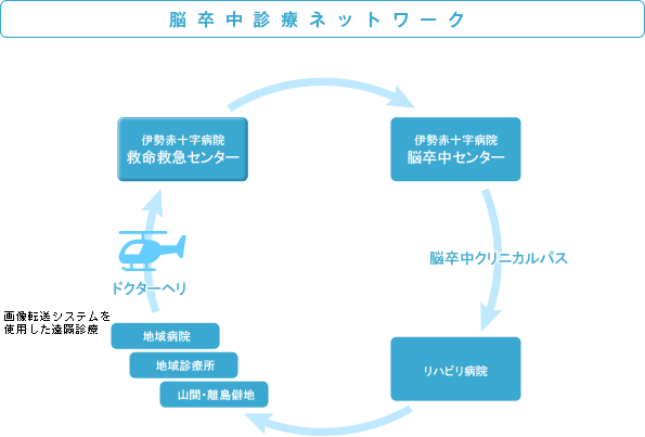◯ 画像転送システムを導入した遠隔診療を実施。尾鷲総合病院・県立志摩病院・紀南病院との間で実施し、離れていても早期に確実な診断治療の開始ができる体制。