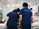 | 救急病棟 | 救急病棟は、4対1の特定病棟(12床)と、7対1の一般病棟(18床)があります。救命救急センターの一部であり、夜間の入院を中心に24時間、緊急入院を受け入れています。 特定病棟には、急性期の脳卒中や急性心筋梗塞、重症外傷、重症敗血症などの集中管理が必要な患者さんが入院します。また、一般病棟には、全科の患者さんが入院されます。 特定病棟と一般病棟で患者さんの特徴は異なりますが、どちらも突然の入院で環境の変化が生じることは同じであり、身体的ケアとともに不安の軽減に努めています。また、ご家族に対しても同じように精神的支援に努めています。 夜間、多い時には12人程の入院がありますが、新人からベテランナースまで協力し合って働いています。また、新人には、指導者や支援者が手厚く指導してもらえる体制を導入しています。 様々な患者さんと関わるため、多岐にわたる看護知識や技術が必要となりますが、様々な経験ができるのも救命病棟の特徴です。さらに、集中ケア認定看護師や救急看護認定看護師、フライトナースなど、専門的知識を備えた看護師が多数所属しているので、様々な知識を学んでいただけます。 |