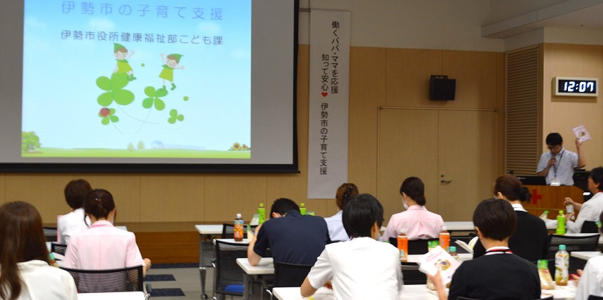 管理職及び子育て中の職員を中心に40名が参加し、子育て支援情報を紹介していただきました。