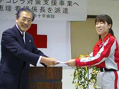 当院からは手術室勤務の東看護係長を派遣いたしました。11月12日(金)に行われた出発式の模様です。