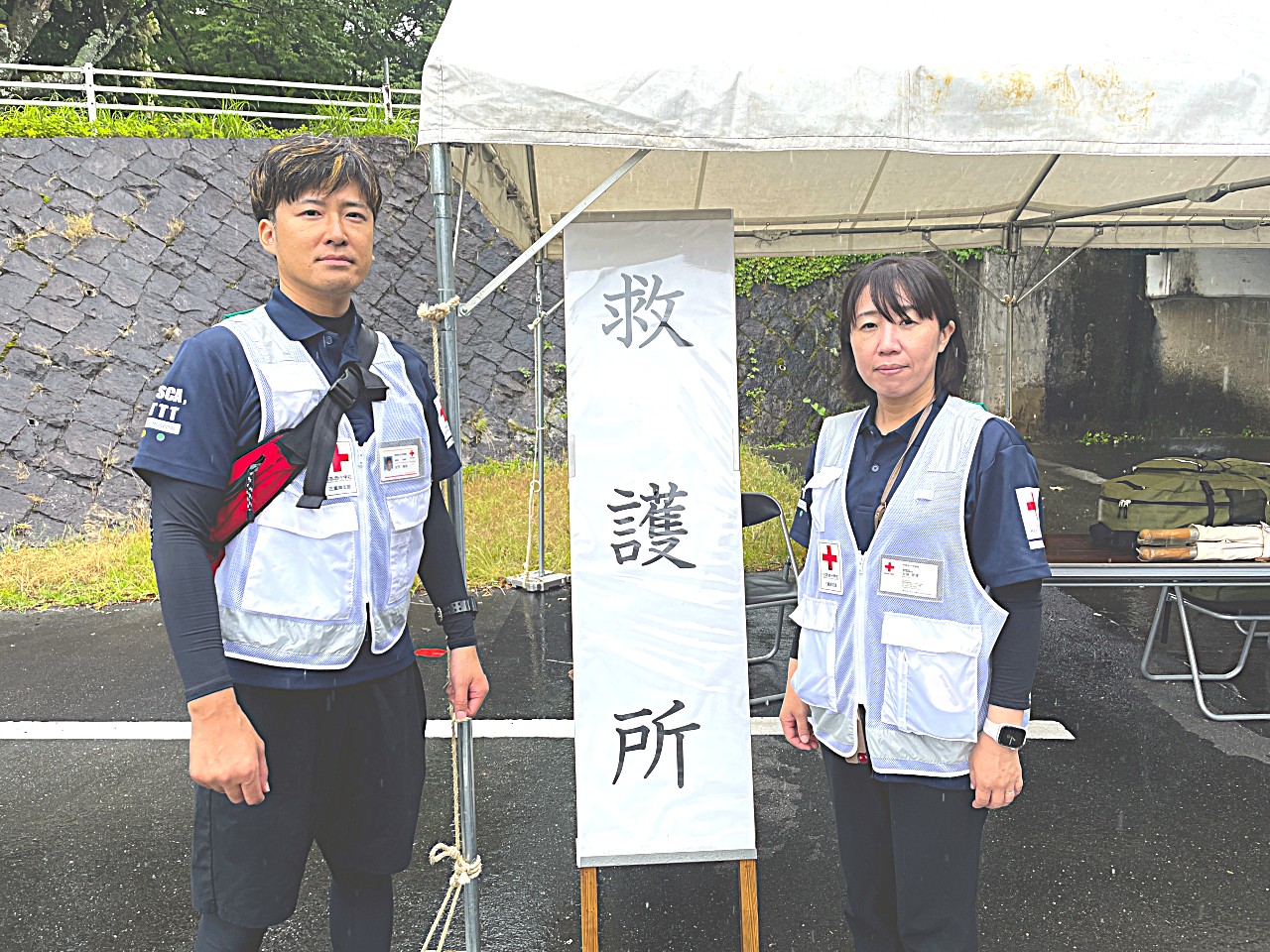 看護師は、川曳の参加者や見学者が体調を崩した場合に備え川曳に同行し、有事の際には救護所にて対応できる体制をとりました。