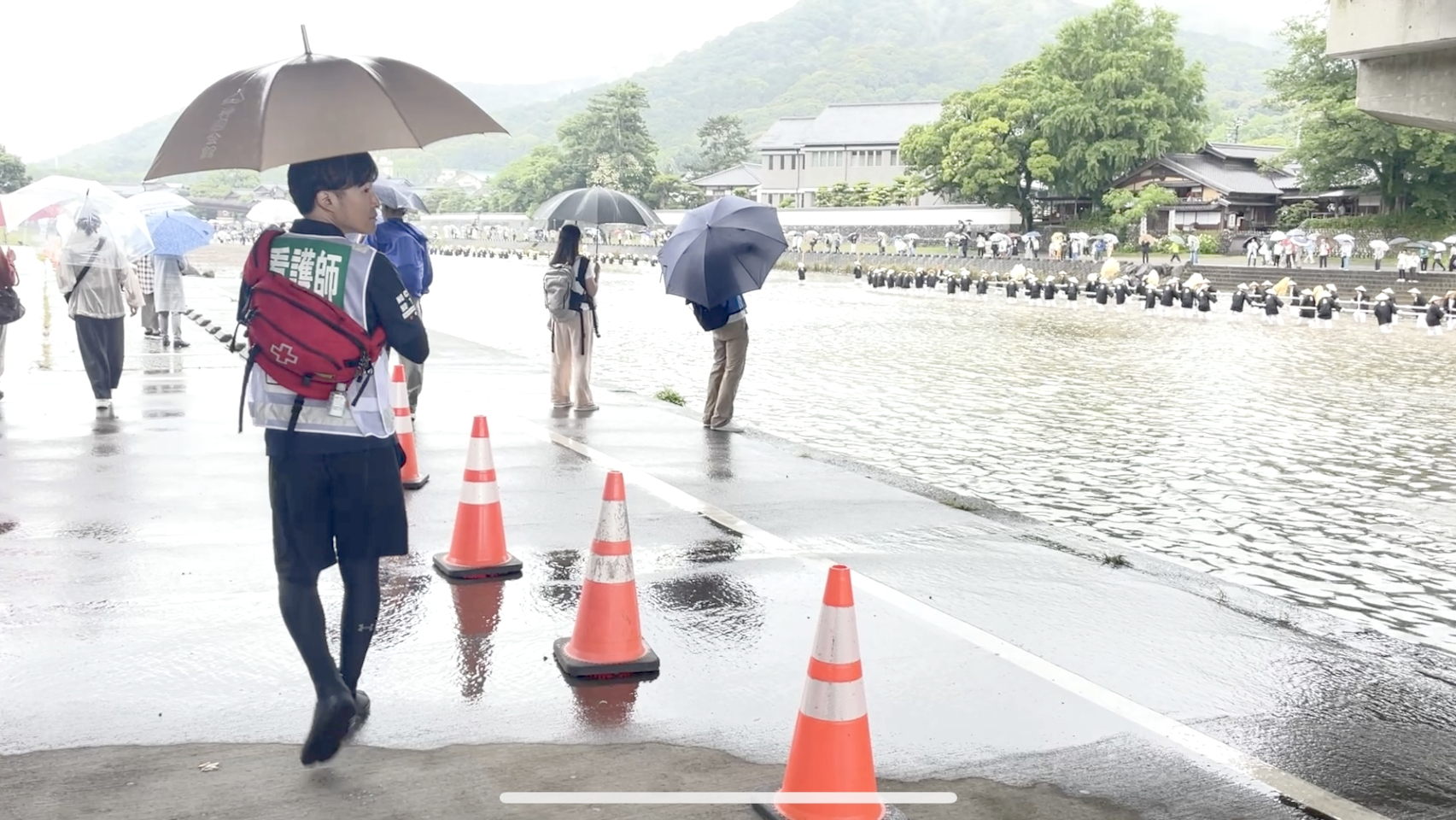 令和7年6月9日(月)五十鈴川にて行われた「第63回神宮式年遷宮 御樋代木奉曵式(内宮)」へ看護師2名を派遣しました。
