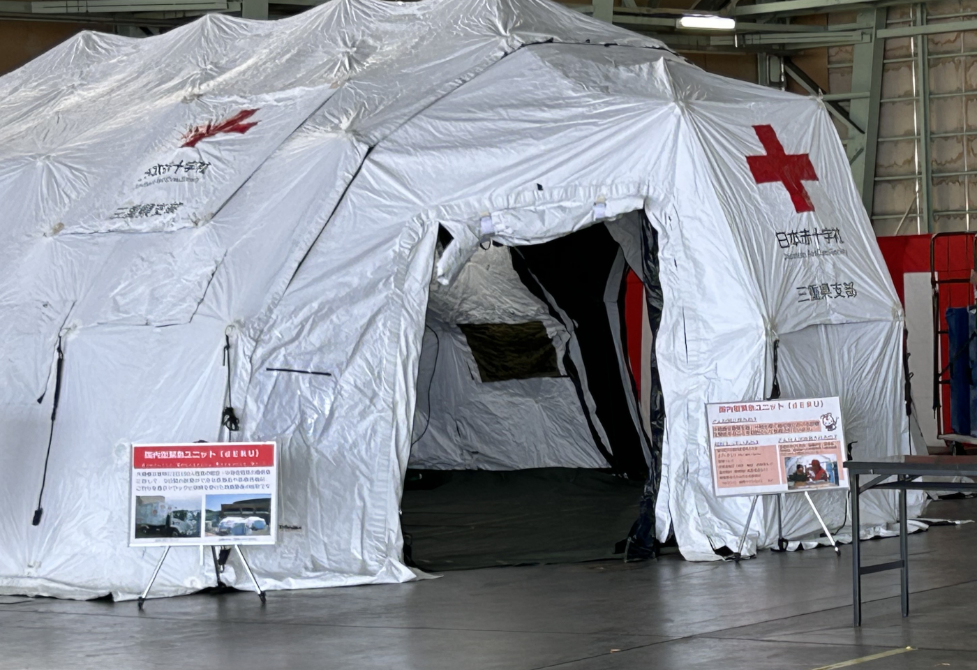 赤十字ブースではパネル展示に加えドラッシュテントを展開し、自由に出入りしていただきました。