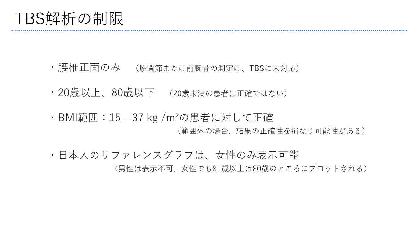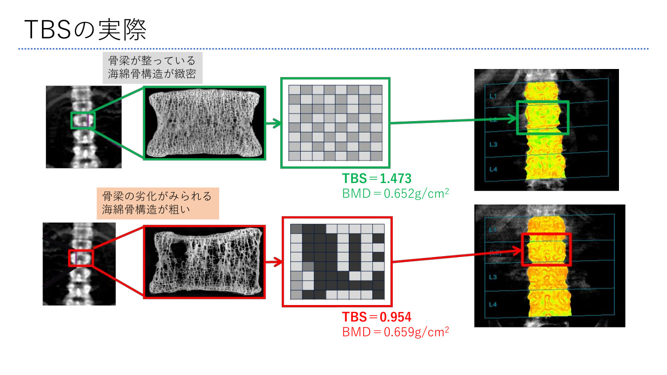 TBSと骨密度は同じデータを元に解析しますが、計算方法が異なります。