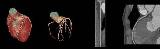当院での最高機種にあたるCTは、人体を透過したX線を検出する部分に新素材を採用し、これにより高精細な画像情報を提供するとともに、患者さんの被ばく低減も実現した装置です。アーチファクトやノイズも軽減され、細かい部分がはっきりと見えることにより内耳周辺の細かい骨の構造や血管情報、心臓では特にステント内腔の評価に優れています。また1つの管球で、2つの管電圧を高速で切り替えることにより、2つのエネルギーでの撮影が可能です。これにより画像コントラストの増強や金属によるアーチファクトの低減、骨、石灰化の分離により血管内狭窄の評価が期待されます。