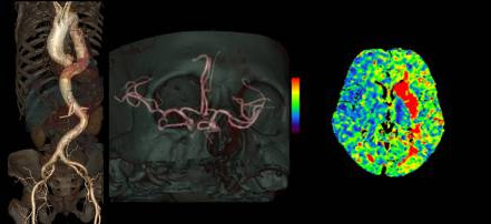 当院では3台の64列CT装置を設置し検査を行っています。CT検査における被ばく低減と画質向上を目的とし、3台ともすべてに逐次近似法を応用した画像再構成法を導入しています。これにより従来と同程度の画像であれば従来のX線量の半分以下での画像化を、従来と同じX線量であればさらに高画質にすることが可能となりました。また、2022年には3次元画像解析システムSYNAPSE VINCENT(富士フィルム社製)を導入し、様々な診療科のニーズに対応しております。