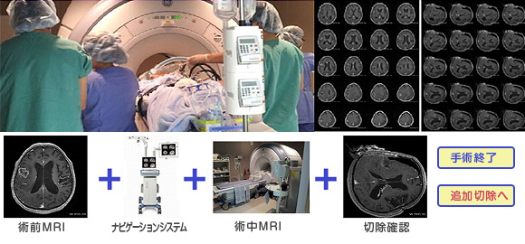 術中MRIシステムは、ナビゲーションシステムと併用し、手術中にMRIを撮像することで、リアルタイムに正確な位置情報や機能情報を得ることができます。これにより以下の利点があります。