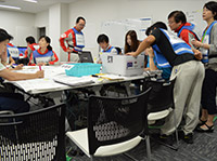 院内の災害対策本部では、被害状況把握、情報収集・整理、関係機関との連絡調整等にあたり、効率的な災害医療のための司令塔として機能しました。