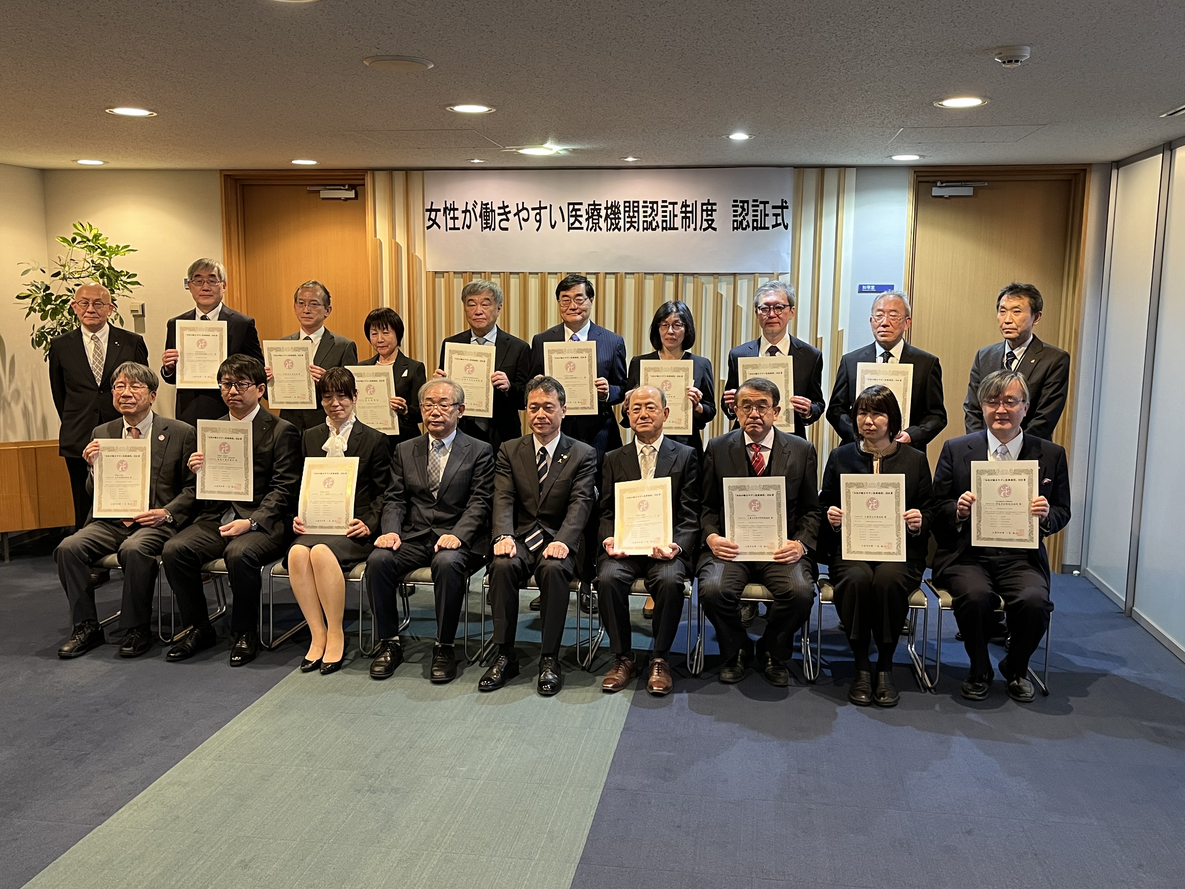 令和5年3月13日、令和4年度「女性が働きやすい医療機関」認証制度認証式にて 上段左端から2番目が当院の村田副院長