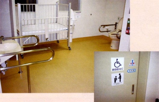 このたび診療棟1階整形外科外来前(旧フラワーショップ跡)に多目的トイレを設置いたしました。 このトイレは障害を持った患者さんだけでなく、お年寄りや妊婦さん、小さなお子様連れの方等に利用していただくために設置いたしましたので、皆様ご利用下さい。 また、トイレ内はストレッチャーで搬送されてきた患者さんに対応できるオムツ交換スペースも確保されております。 (多目的トイレ室内備品:ベビーベッド・ベビーチェア) |