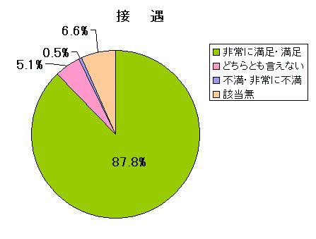@接遇については、87.8%の人が満足または非常に満足、0.5%の人が不満・非常に不満という結果でした。