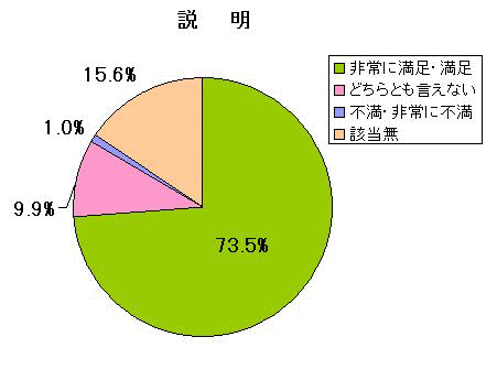 A説明については73.5%の人が満足・非常に満足、1.0%の人が不満・非常に不満という結果でした。