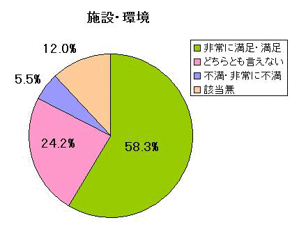 B施設・環境については、58.3%の人が満足・非常に満足、5.5%の人が不満・非常に不満という結果でした。